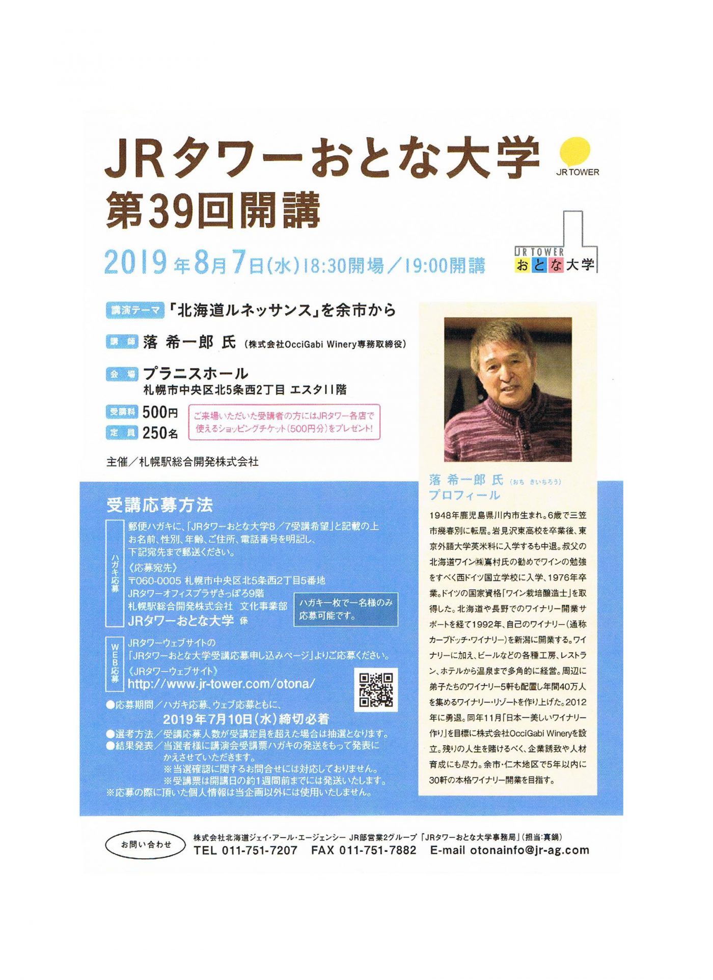 〜〜 JRタワー おとな大学 第39回開講 〜〜